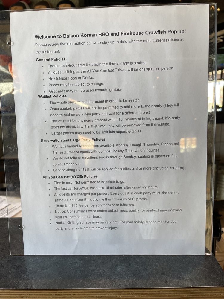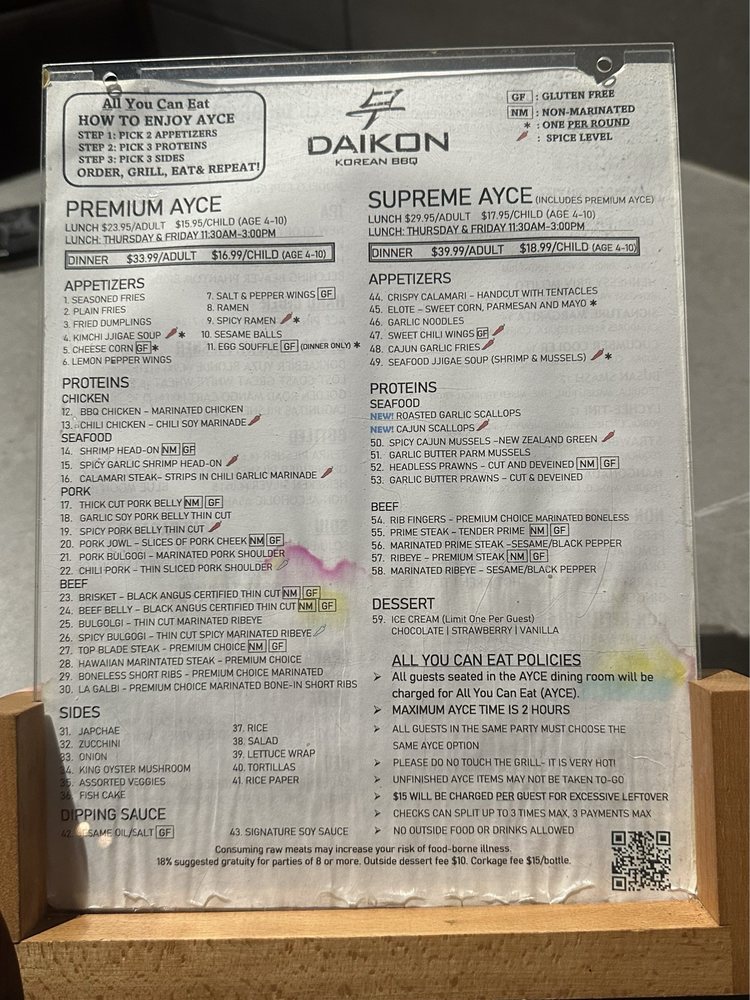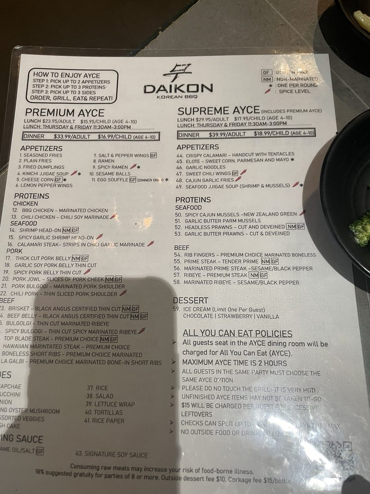Introducing Daikon Korean BBQ, located in Sacramento, CA, this trendy and casual restaurant offers a wide range of amenities such as reservation options, takeout, delivery, and wheelchair accessibility. The menu features various meat options like BBQ chicken, pork bulgogi, and garlic butter mussels, alongside sides like garlic noodles and lettuce wrap. Customers praise the inviting atmosphere, quality of the food, and value for money. With positive reviews highlighting the flavorful dishes and attentive service, Daikon Korean BBQ stands out as a top choice for Korean BBQ enthusiasts. From the variety of meats to the delicious sides, this restaurant provides a satisfying dining experience for both individuals and groups. Don't miss out on the must-try dishes and the vibrant dining ambiance at Daikon Korean BBQ.